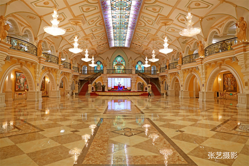 当你走进这座宫殿,便会为金色大厅的金碧辉煌、精致的壁雕、根雕所震撼。一楼大厅里陈列着十幅大型壁画,均来自于世界著名四大美院之一的俄罗斯列宾美术学院的原创作品;二楼的廊道间展示着数十幅俄罗斯著名画家的油画作品。走进艺术宫,宛如畅游在艺术的殿堂。