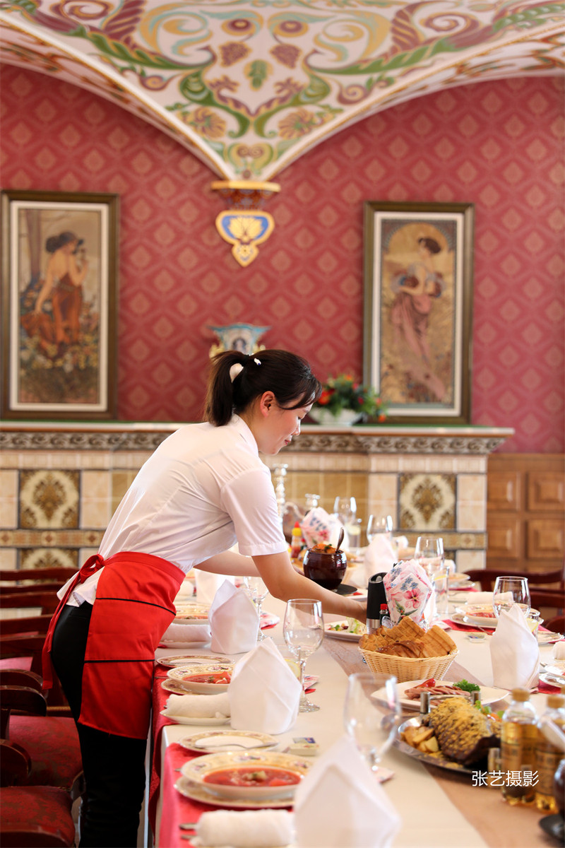 当美丽的女服务员在华丽的餐桌前摆盘的时候,不得不按下快门,把这里的一切记录下来,然后赶紧发朋友圈,和朋友们共享美好的时刻。