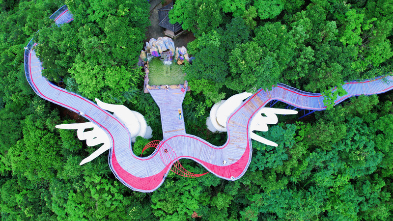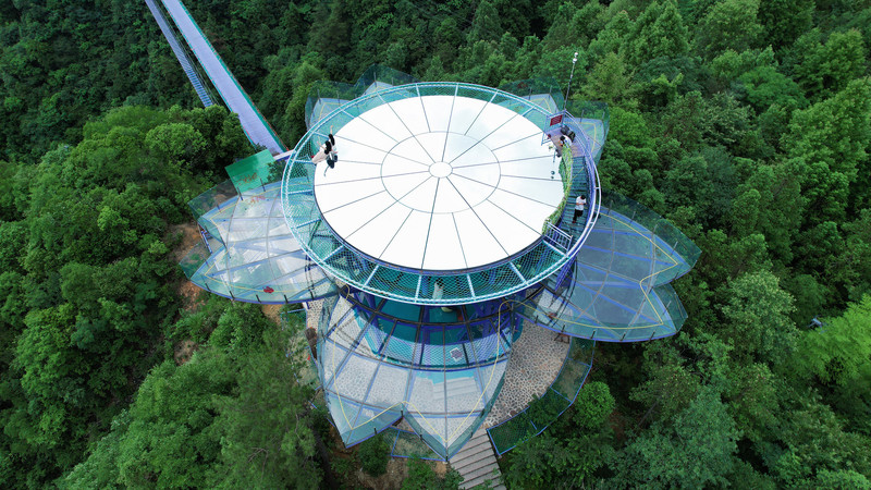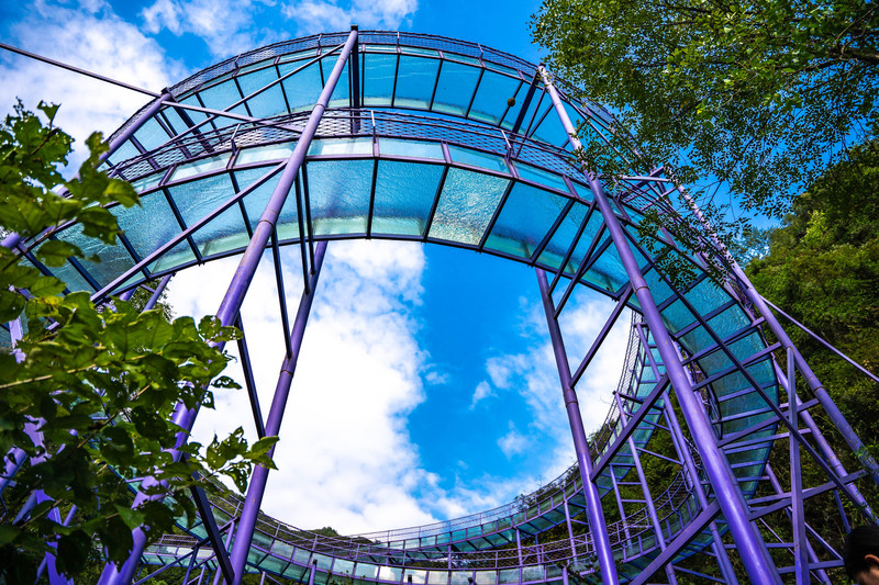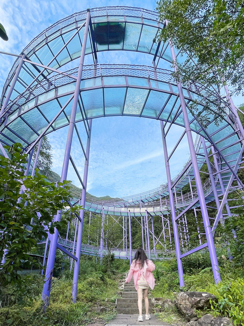 紫金花悬崖眺台+天空之镜这里是拍照出圈最好的位置,一共有三层,二层是悬崖眺台,三层是天空之镜。站在紫金花悬崖眺台上,可以欣赏景区的山林美景,沉醉夏日无尽的绿意之中,偶尔有小风吹过,真的非常舒服!