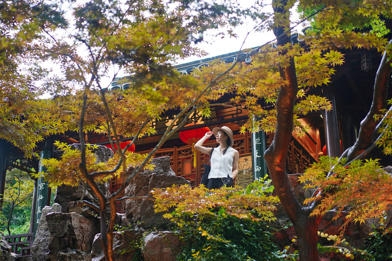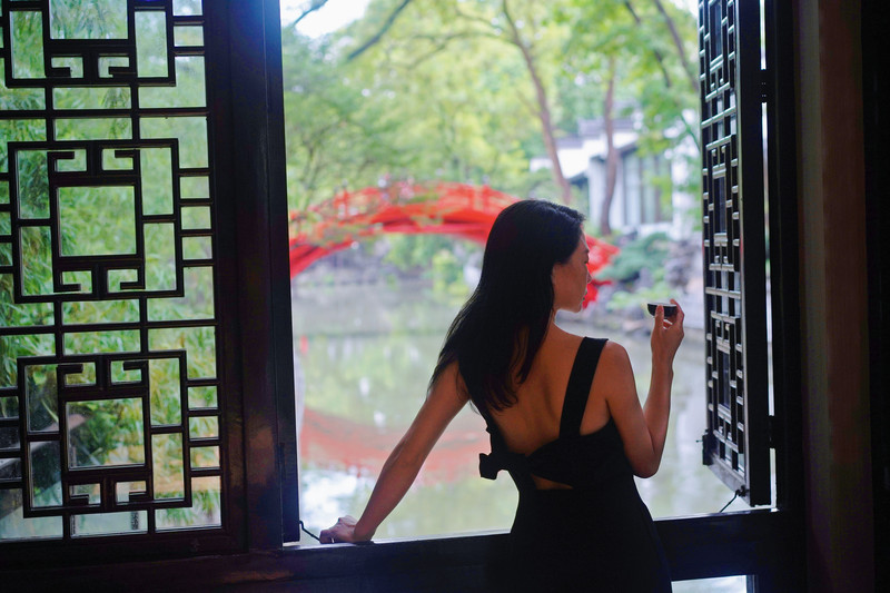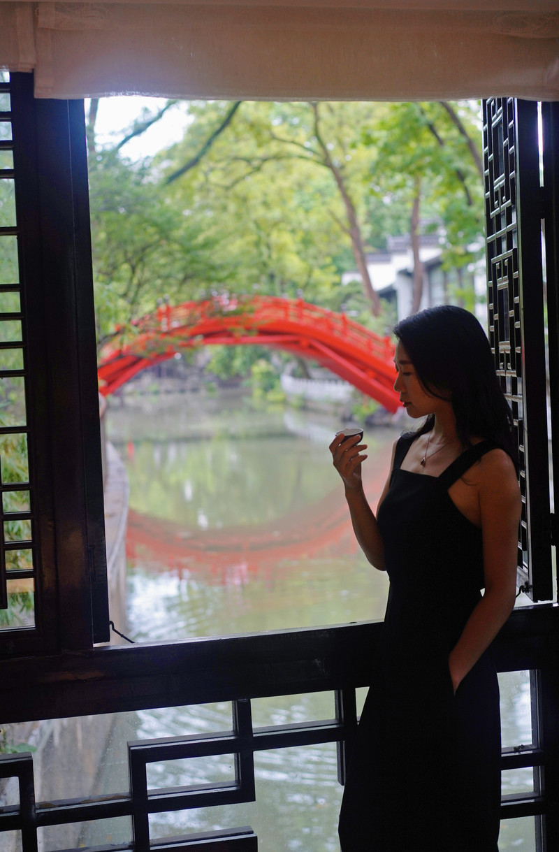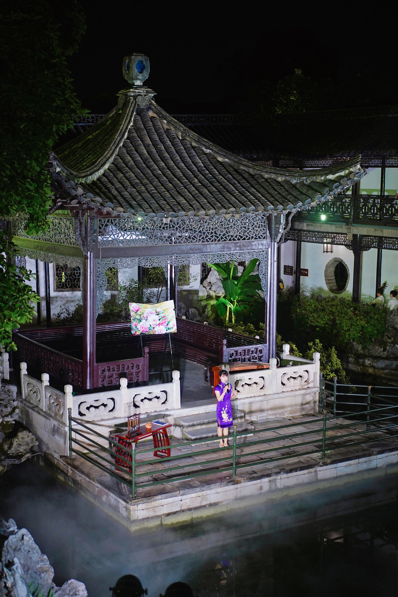 夏山有种热闹的氛围感,以青灰色太湖石为主,看似凌乱的叠石堆砌成山,山间有洞、桥、湖、亭,且荷花盛放,穿梭其中,如红楼梦中的迷宫,趣味盎然。夜晚,古装女子和少年,会在湖边的清漪亭里跳舞和吟唱,女孩舞姿翩翩,少年歌声绕梁。