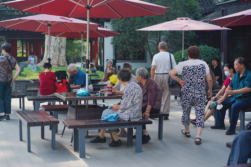 冶春茶社是另一种感觉,也有亭子、回廊和流水,但冶春有更浓的市井气息,院子里有个戏台子,每天上午都有当地人在这唱曲儿,观众席除了游客,还有不少附近的街坊。