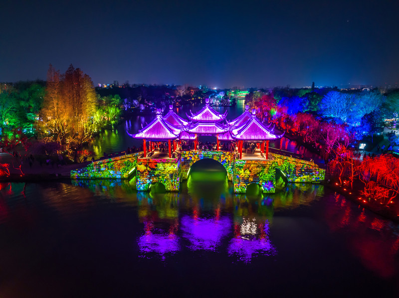 当斑斓的灯光点亮瘦西湖的五亭桥、小金山、熙春台、二十四桥、白塔......你便走进了一场古今交融的沉浸式实景剧中。