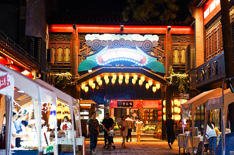 出了个园,还有一条繁华的夜市等着你去探索,主打一个时尚潮流的中国风,仿古的街道灯火通明,街角隐藏着汉字为主角的网红打卡点,以及科技光影营造的氛围,你还会发现许多扬州特色的工艺品和小纪念品,大人小孩都会喜欢。