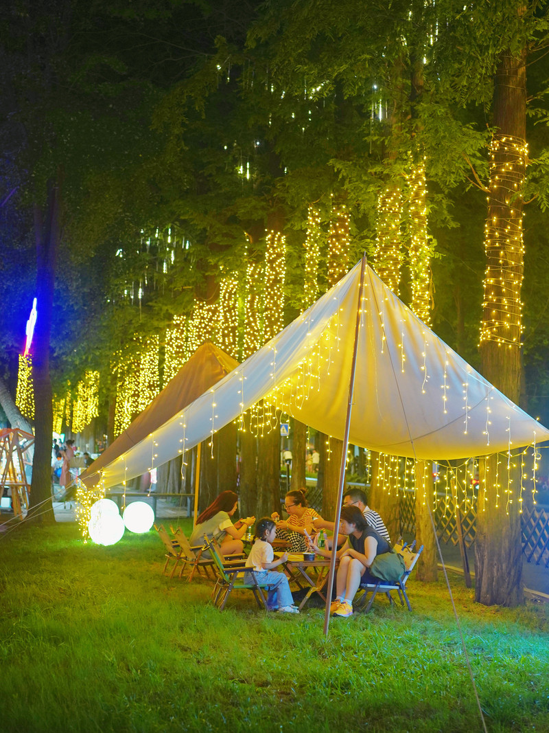 夜市灯光可以说是一件件美妙的艺术装置,它们在你身后连成一片灯海,在你头顶交织成满天星。