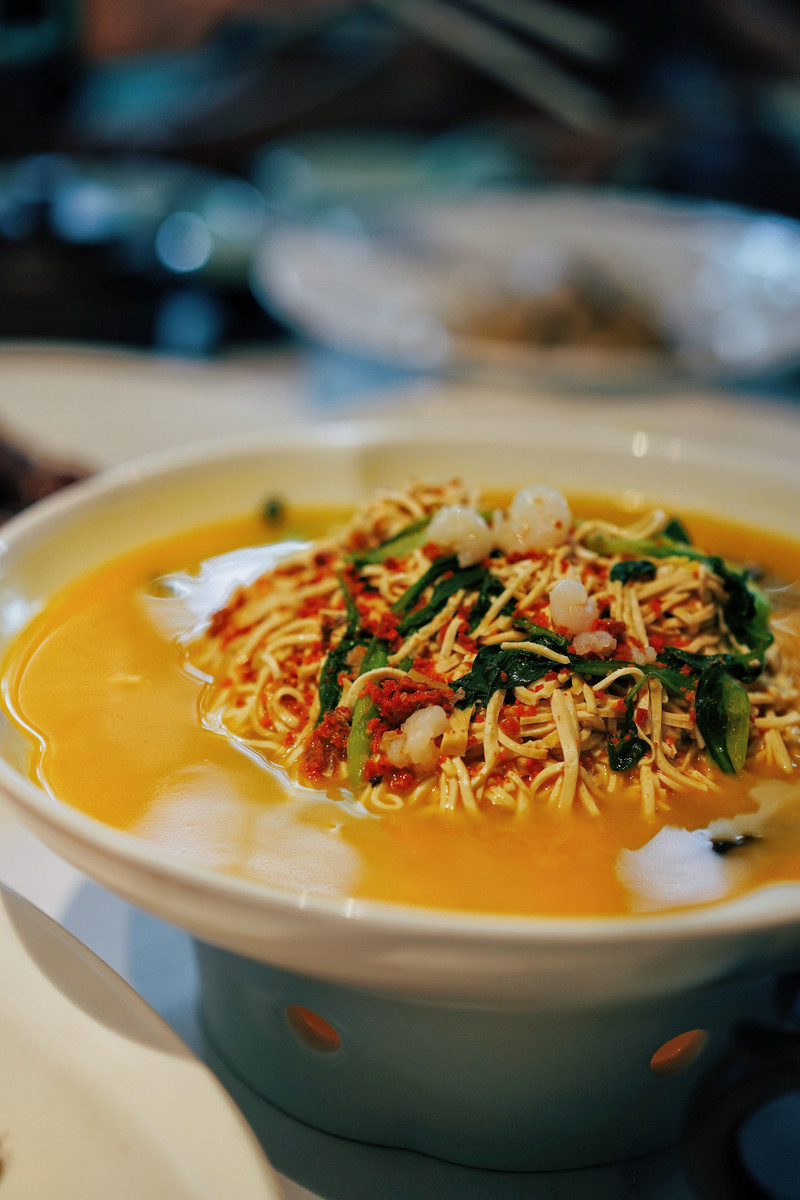 一道淮扬软兜就能体现厨师的技艺,文思豆腐刀工也是如丝如缕,菜品无论是色香味,还是摆盘,呈现出来的都是东方古韵的美。当然你也可以到隔壁的美食街,各种扬州小吃,尽情去尝试。