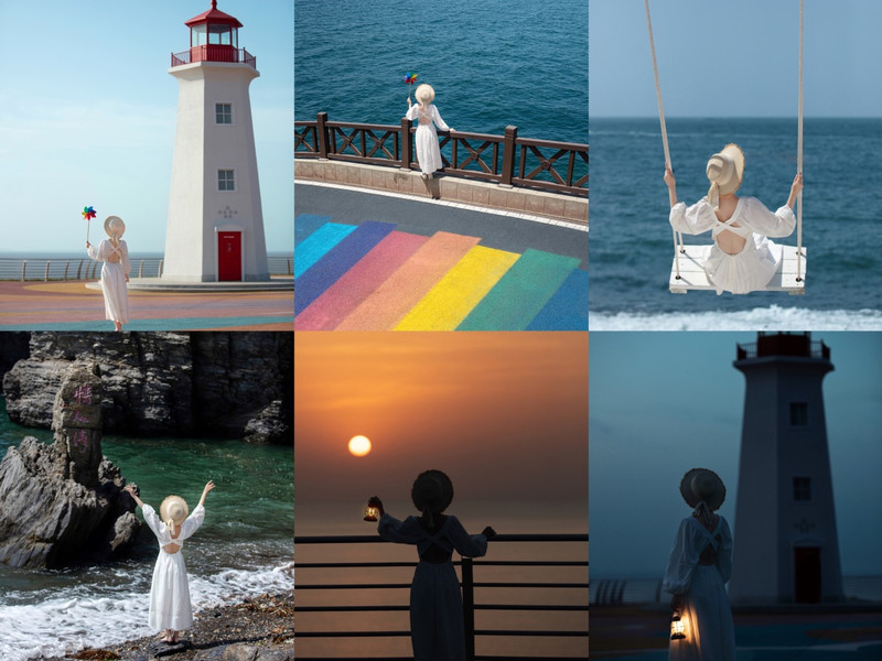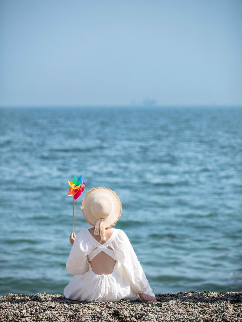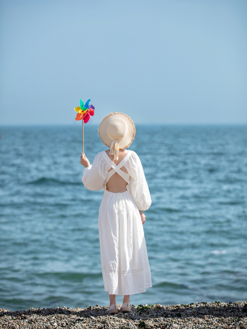 我们去的时候是白天,有一些游客但不多,拍照可以取局部场景,白色的裙子和彩色的风车是绝配哦,拍背影就很好看。