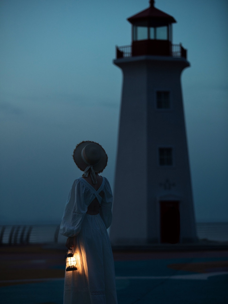 十几分钟后,天空出现了蓝调,此时炎热消散了,傍晚的海风吹走了所有不愉快。望着不远处的 灯塔,我想起了电影《弗兰克》里的歌词:I want to marry a light house keeper,And keep him company, I want to marry a light house keeper,And live by the side of the sea.