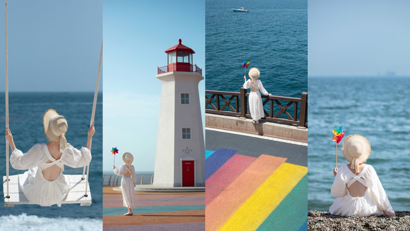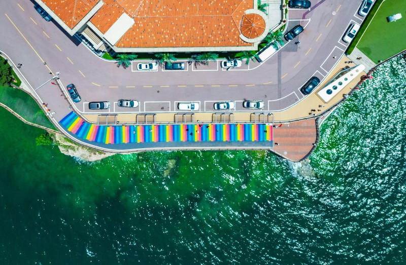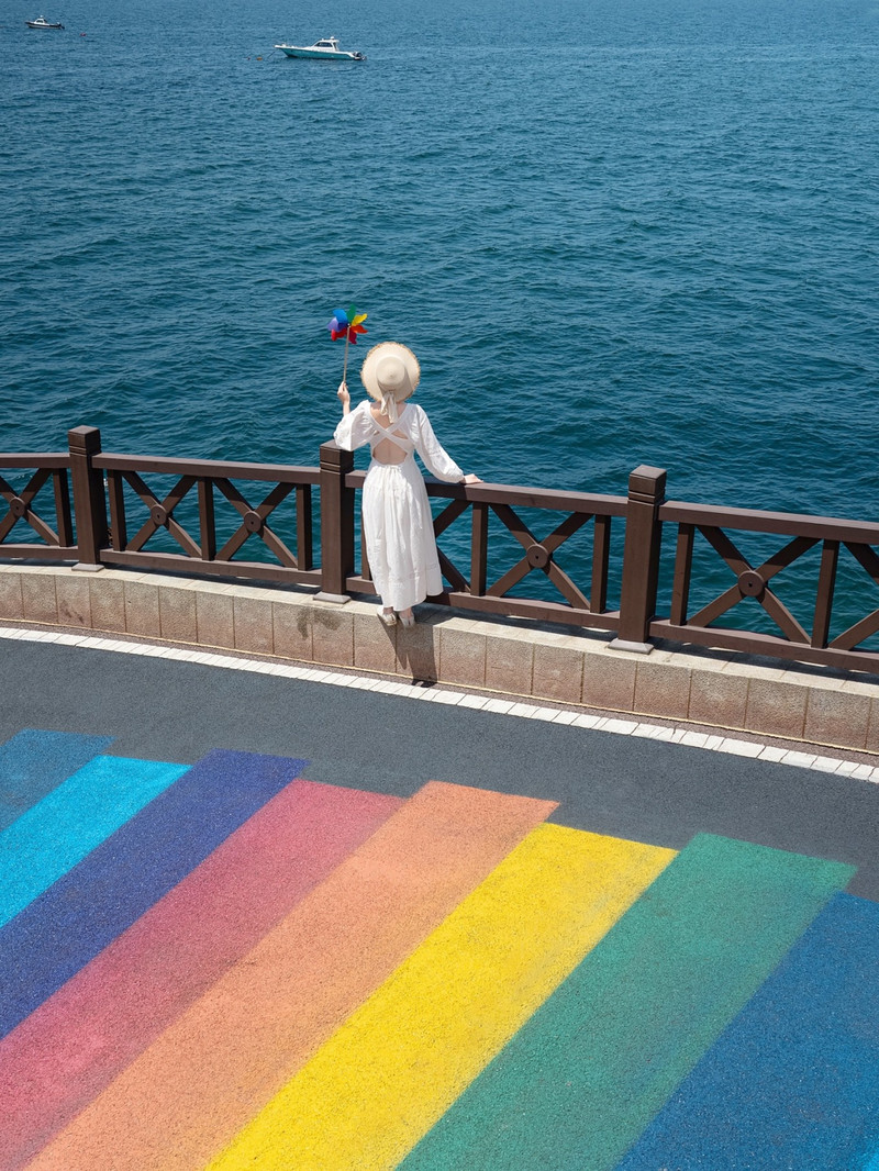 这条彩虹路不长却 临海 ,航拍的话就能看到它的全貌。这里没有车经过,不用担心拍照会不安全,可以尽情和姐妹们摆各种POSE