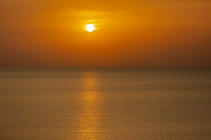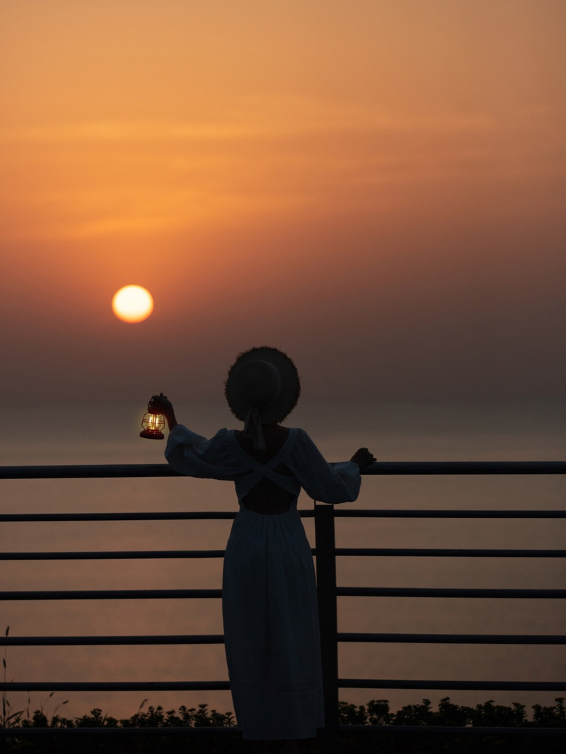 七点多,夕阳开始落下,橙色的光晒满了海面,照到了 灯塔 顶端,梦幻般的场景转瞬即逝。也许,所有美好的事物,都是短暂且易逝的吧!
