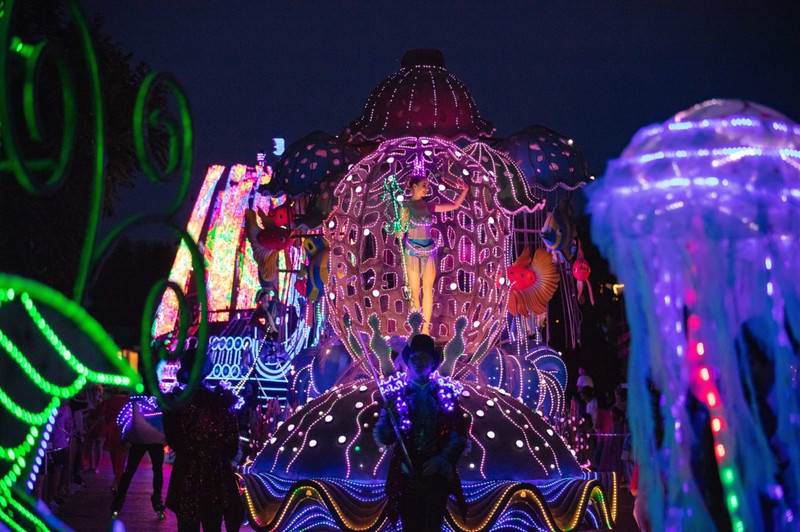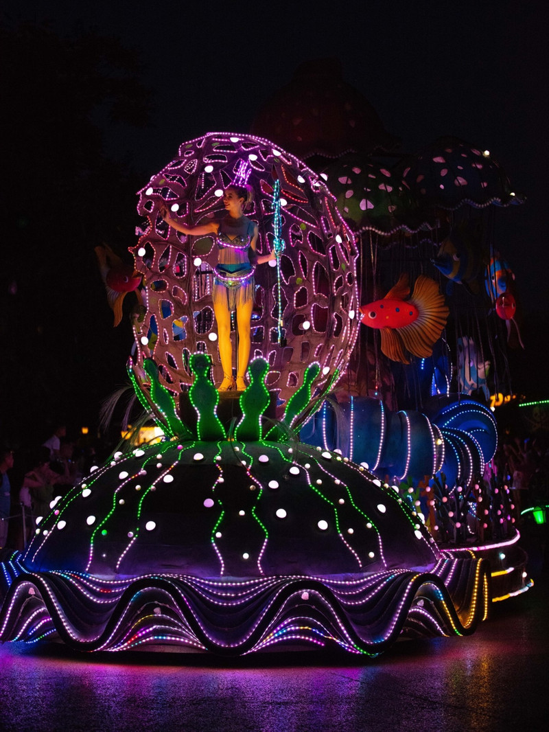 白天的发现王国是火热的,刺激的,惊险的,晚上则是另一番绚烂的景象。告别了白天的炎热,晚上再次入园,迎接我们的是五彩的夜光巡游,超美的夜景。