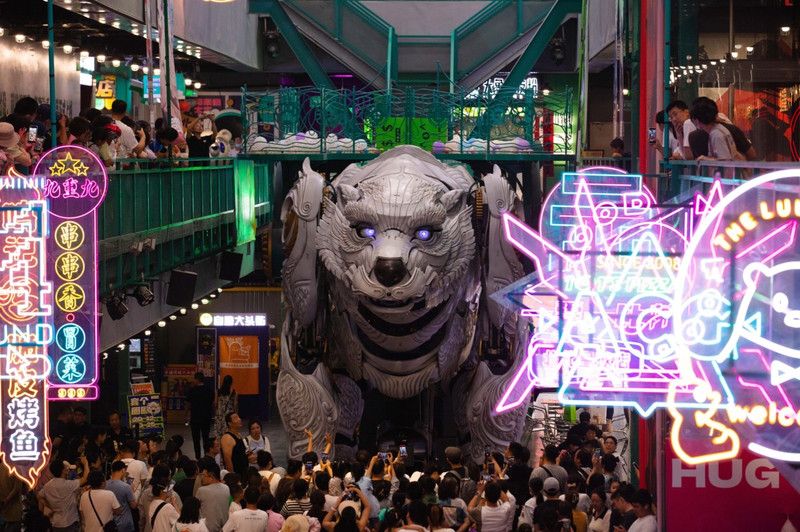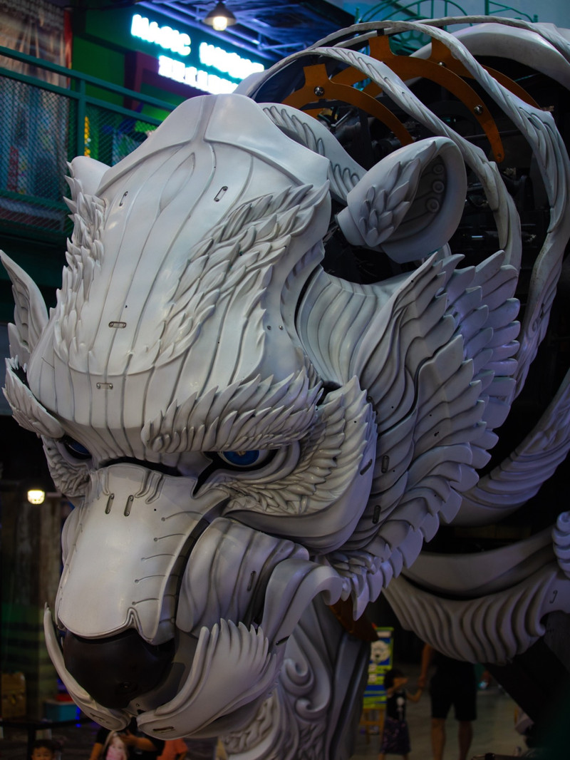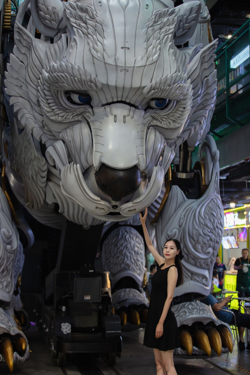 巨熊北北是熊洞街的核心IP,它是艺术家肖迪为首个室内街区环境打造的电控轨道式行进机械巨兽,身高714米、重25吨,身形巨大,相当酷炫。