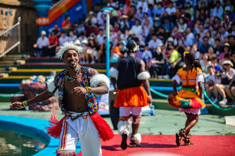 晚上,除了舞台上的演出,还有梦幻的焰火秀。盛大的烟火秀在八点半准时压轴上演,浪漫撩人,特别适合情侣一起观看。