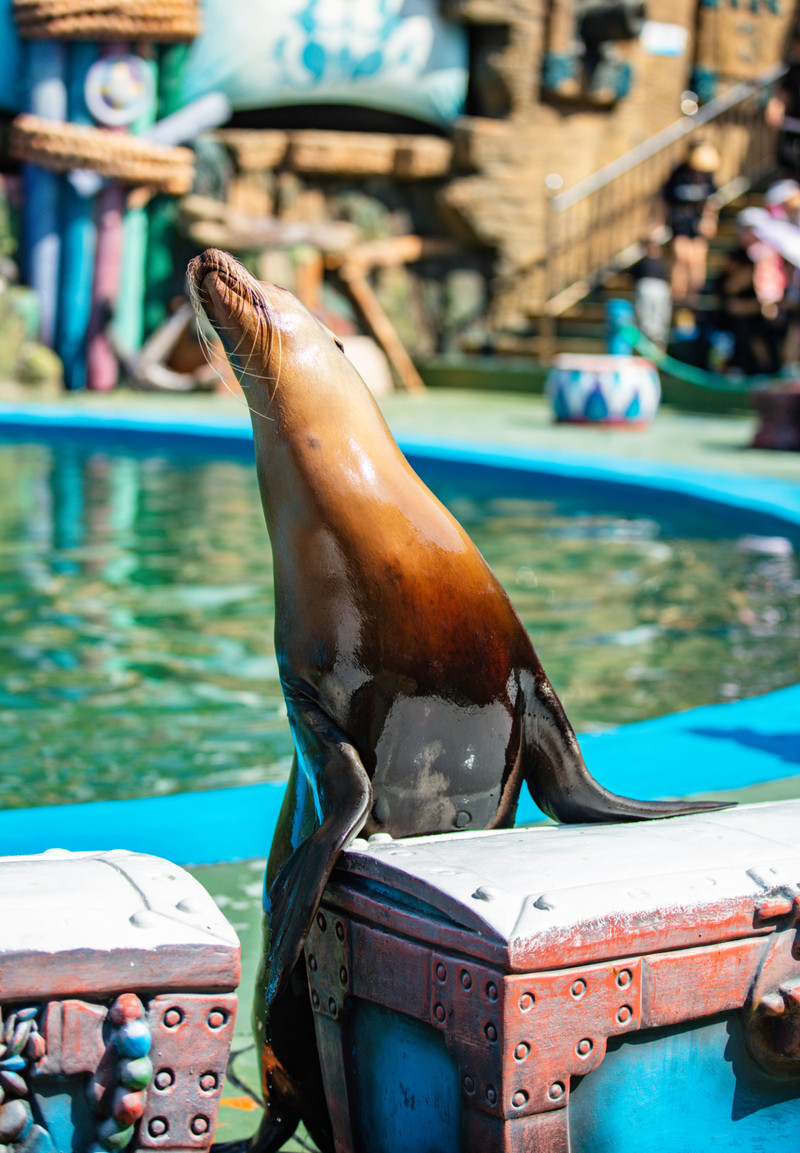 欢乐剧场是海狮表演,小海狮超级可爱,但是表演场地是露天的,晴天的时候会特别晒。千万不要坐在前排,往后面不晒的地方坐也能看到。