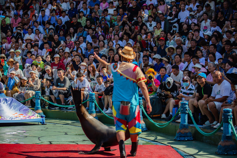 老虎滩海洋公园也是滨城 大连 的一道亮丽风景。暑假时节,这里有很多亲子家庭过来玩,孩子们对于海洋动物的喜爱溢于言表。