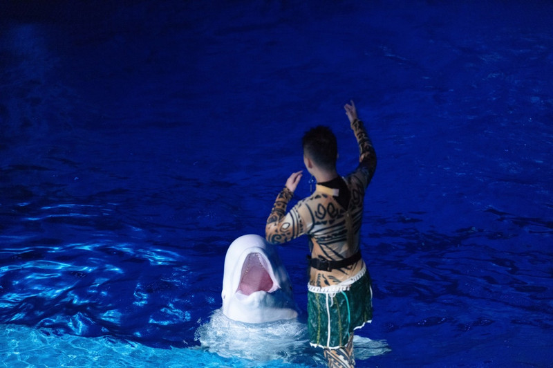 最后美人鱼出场很梦幻,无论是白鲸还是海豚,它们都充满着灵性,能完成很多超高难度的动作,我也是第一次听到白鲸唱歌,感受到了人与动物之间的无限信任与情谊。