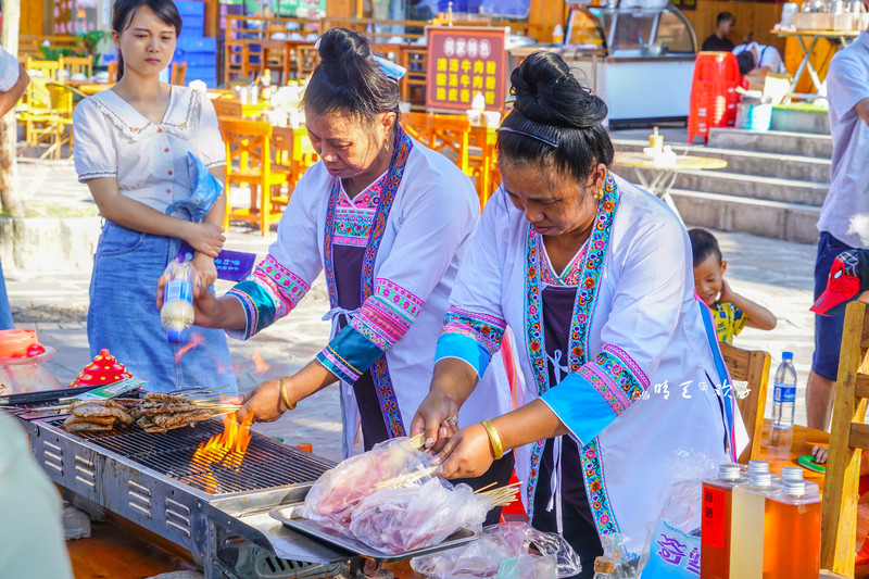 游览完小七孔,景区东门外紧邻梦柳布依风情小镇,选择过夜的游客普遍在这里住宿,夜晚的小镇很有烟火气。