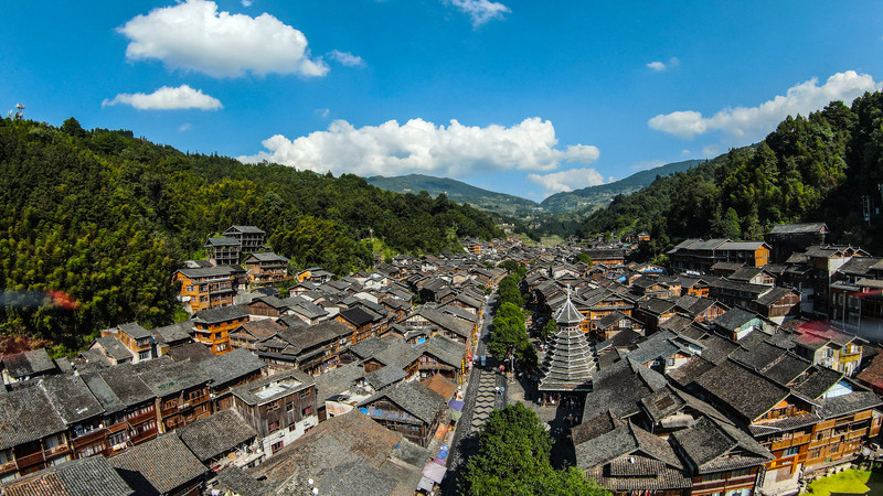 肇兴侗寨有被载入吉尼斯纪录的侗寨鼓楼群,鼓楼特色不一。肇兴原名“肇洞”,是一个东西向的狭长谷地,两条小溪汇成一条小河穿寨而过,河面跨有六座风雨桥,风雨桥因桥上建有长廊式、可遮蔽风雨的桥屋而得名。