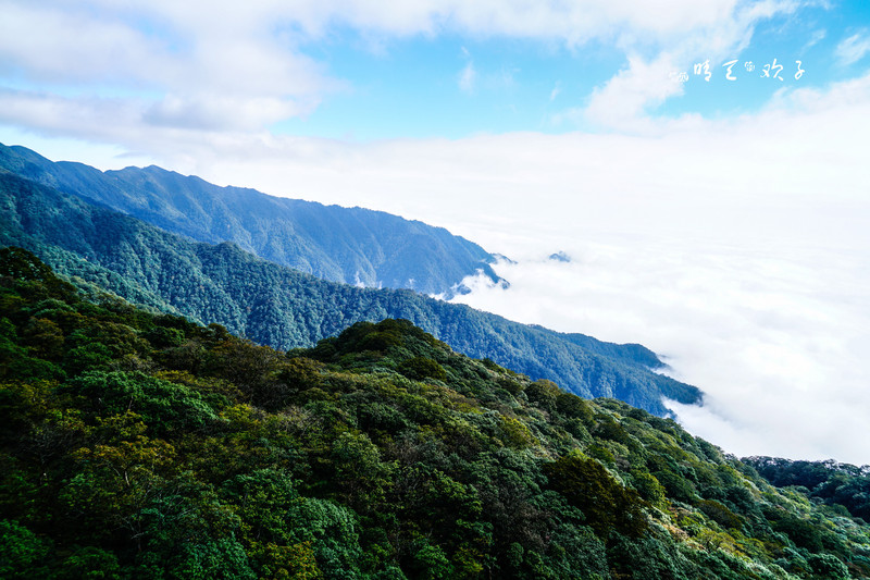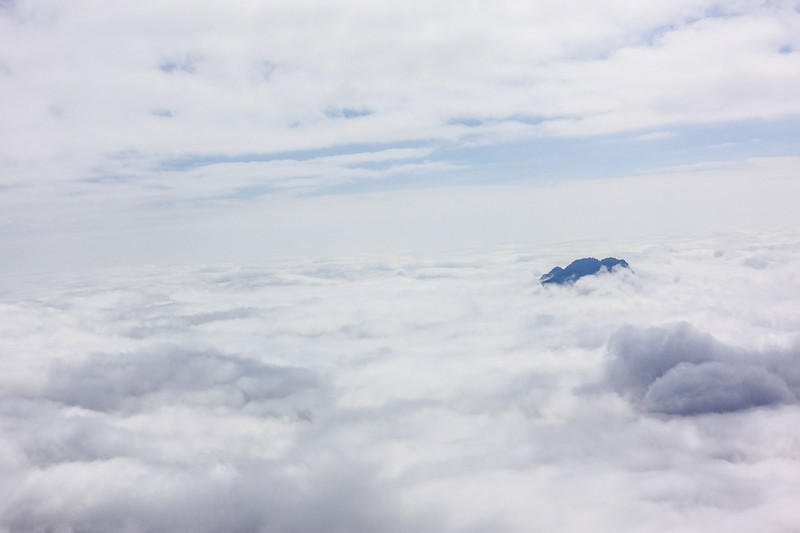 如从山脚登攀,大概需要5~6个小时,我们选择缆车...... 坐缆车而上,山下小雨,穿过山腰的云层,竟是大好晴天。