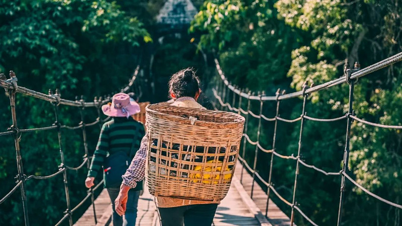 龙川江铁索桥,位于芒棒镇桥街村委会西侧龙川江上,为元明以来保腾驿道过龙川江的主要桥梁。“江水拍山去,吊桥依旧在”见证了数百年世事变迁的古吊桥如今仍是两岸往来的重要通道 ,看到往来如梭的行人,似乎依稀还能感受到这里曾经的商旅繁荣。
