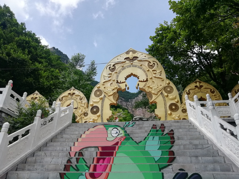 全部步行:进山门——游览车——八个馆——滴谷洞——仙堂寺——娲皇宫——观音洞——卧佛——财神庙——游览车——山门,刚好环半山一圈,也不很累。山下的游览车是20元来回。