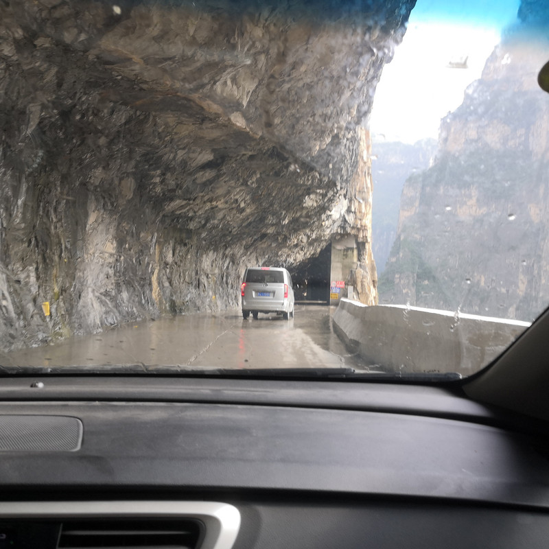 重新导航井底村,这就对了,直接驶上了挂壁公路