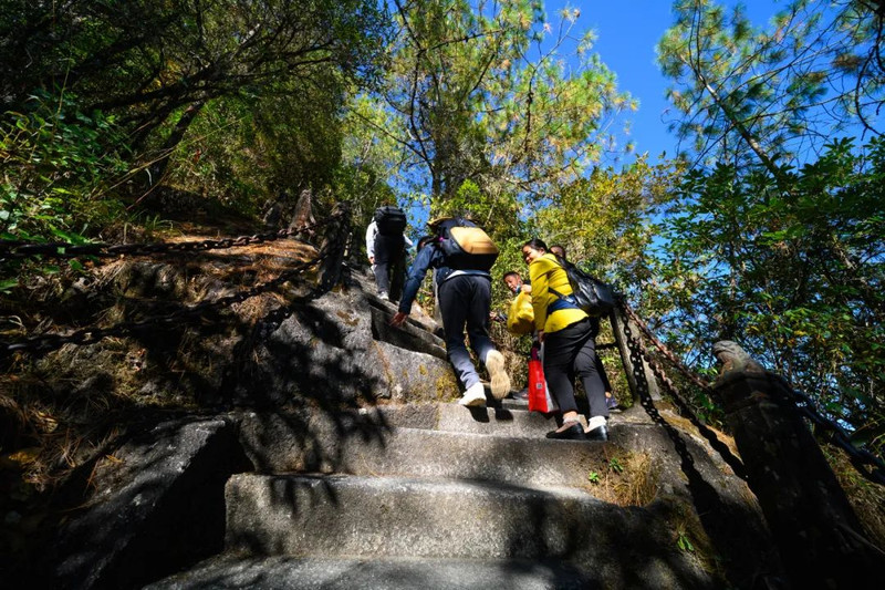 如今想要登顶云峰山,游客可以选择乘坐缆车,到半山腰后再徒步登500多阶石梯,即可登顶俯瞰云峰山全貌。云峰山与缅甸隔山相望,其源远流长的道教文化及自然风光,每年都吸引众多国内外游客上山许愿、朝拜。