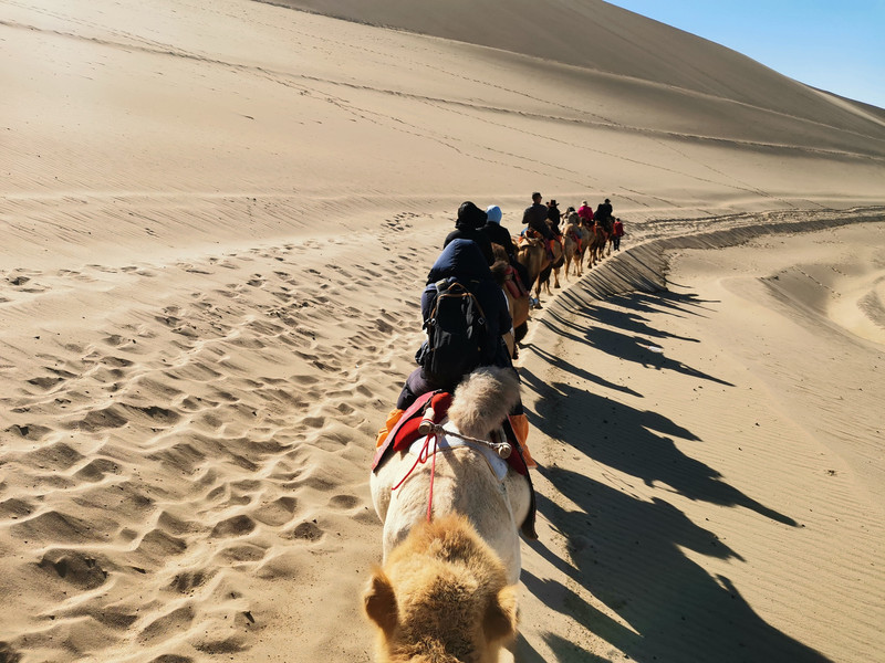 鸣沙山的沙山可能不是最高的,但它胜在连绵逶迤。不像宁夏的沙湖,被水围着没有来龙去脉。