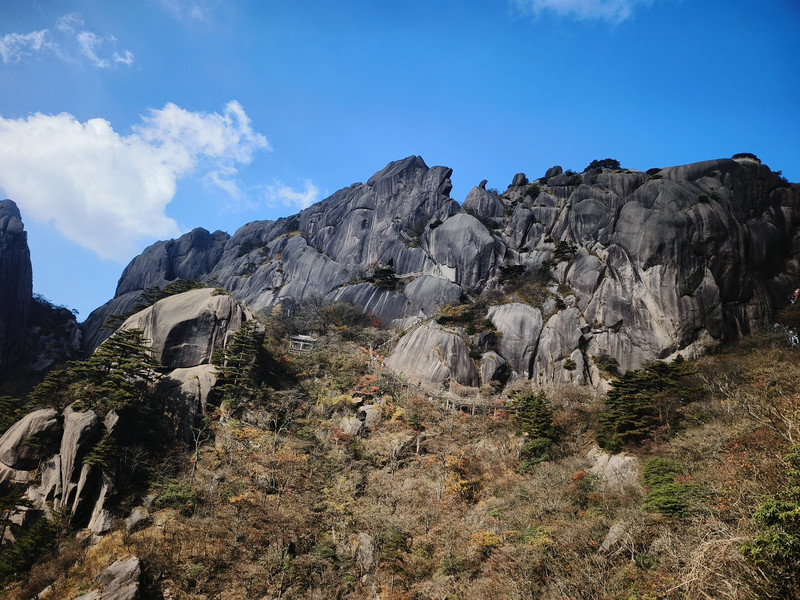 早上6点起床,7点到达黄山南大门检票口。坐上景区的摆渡车,下了车再走一段路,坐云谷索道,从后山上山。8点,我们下了索道,正式开始登山之旅。