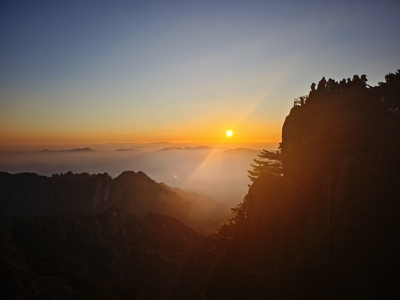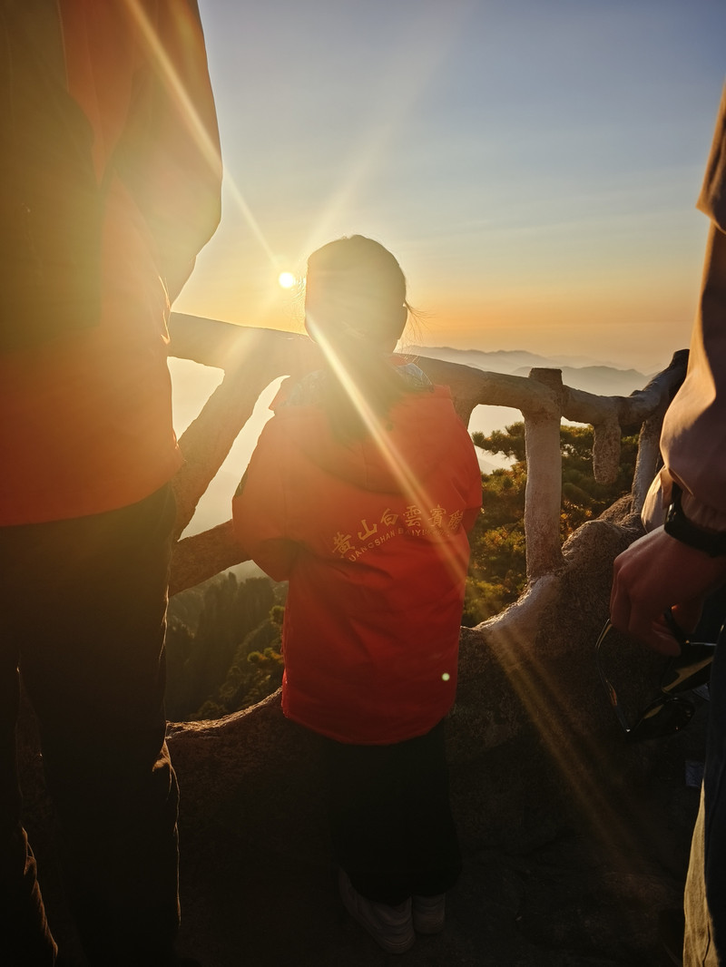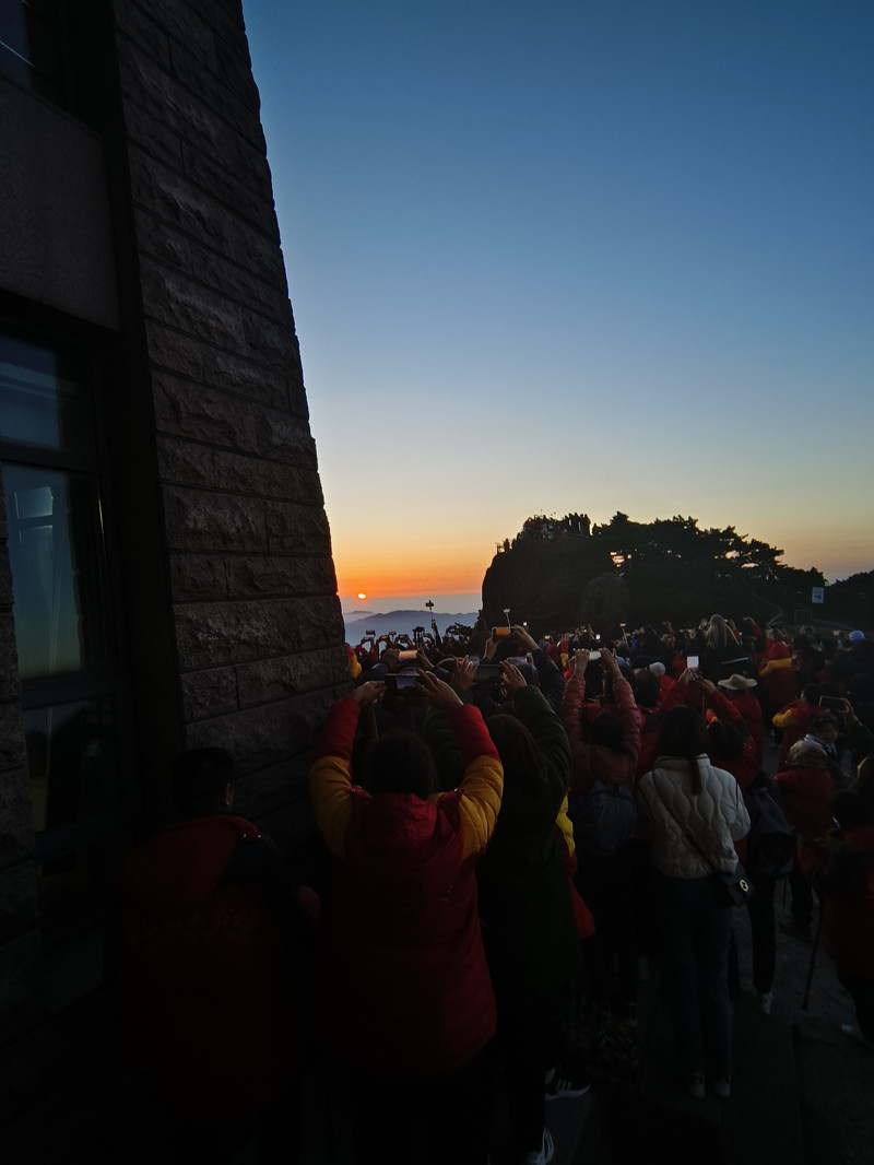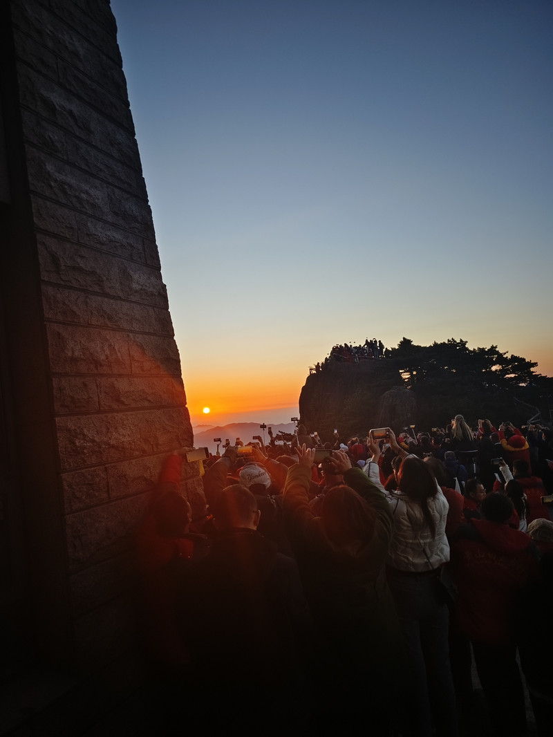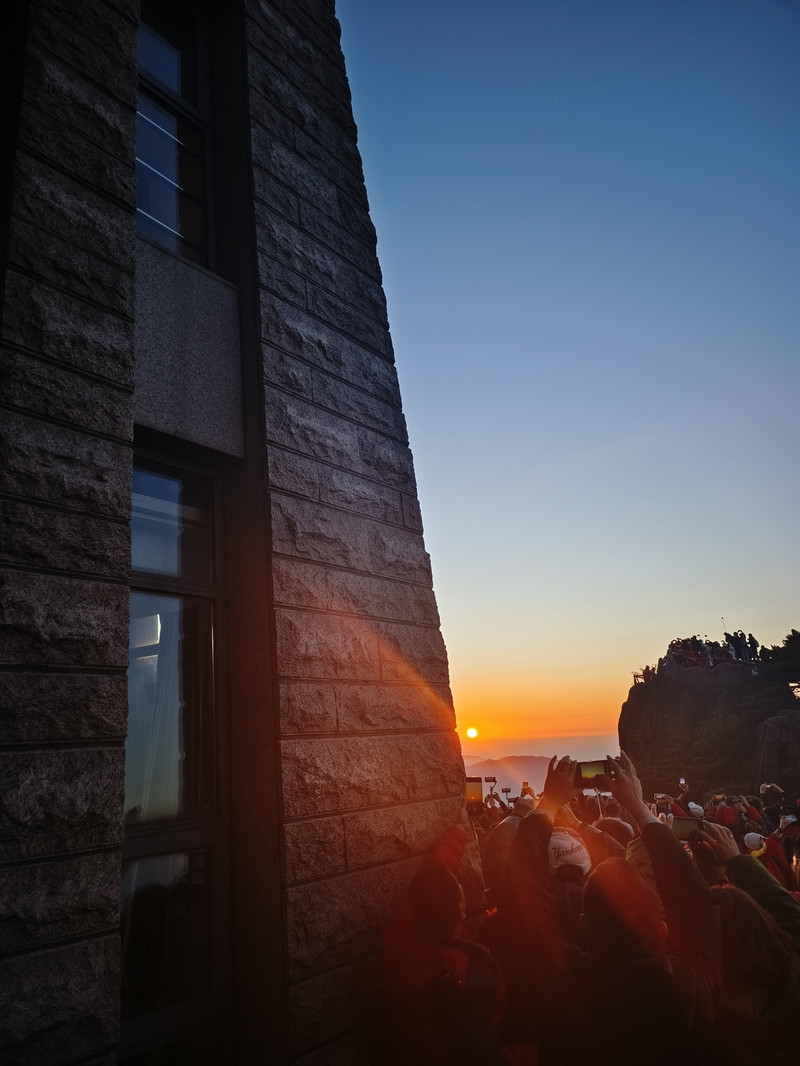 又绕着光明顶一圈,最终发现一处一米多高的窗台,我奋力把孩子抱上去。孩子刚站稳,就听人群里一阵骚动,我扭头一看,太阳出来了。看了一眼手机,此刻是6点19分。