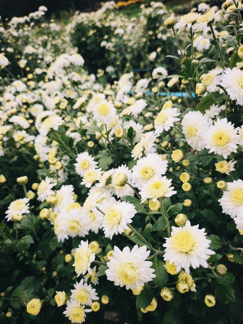 又经黄山“三棵树”,路边种满了大片的菊花,有黄色和白色两种颜色,正是花茶采摘时。