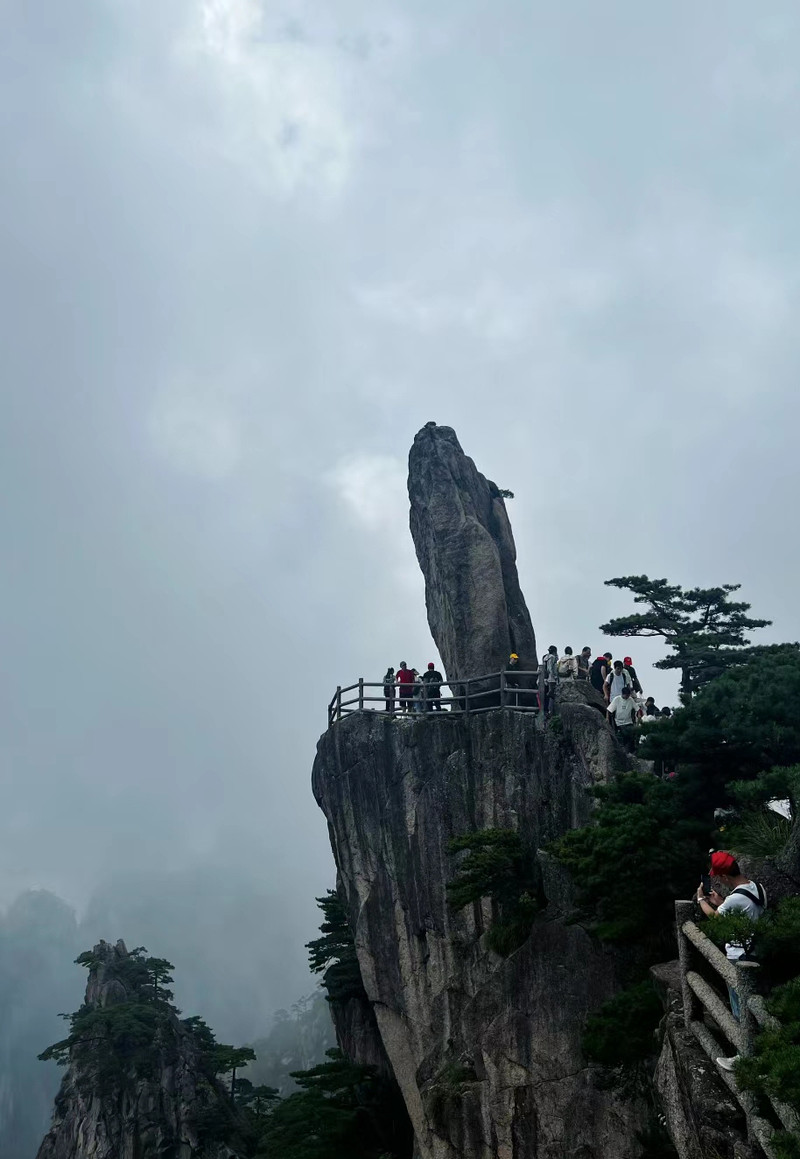 飞来石,黄山的一块奇石,名气很大,必须带小朋友来打个卡。
