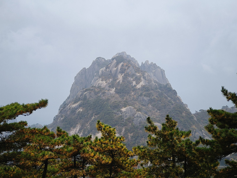 此刻,乌云遮蔽了天空,灰暗的色调下,黄山顿失了色彩