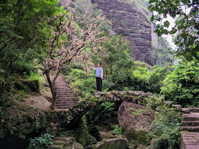 章堂涧,这里有座渐悟桥非常美。再加上边上的桃花(总觉得是假的)一搭配,简直如仙境。