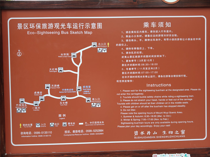 我在北入口买了交通2日票,后来发现北部区域车辆和南部区域车辆不直接相通,要在武夷宫中转。而武夷宫作为竹筏漂流的终点,行人是不用买车票就可以自由进入的。尤其是除了南北两个入口车站,其他站点均不需要验票就可以直接上车,这交通2日票顿时觉得买贵了,这是后话,从侧面也证明我不够穷,没想到钻空子。