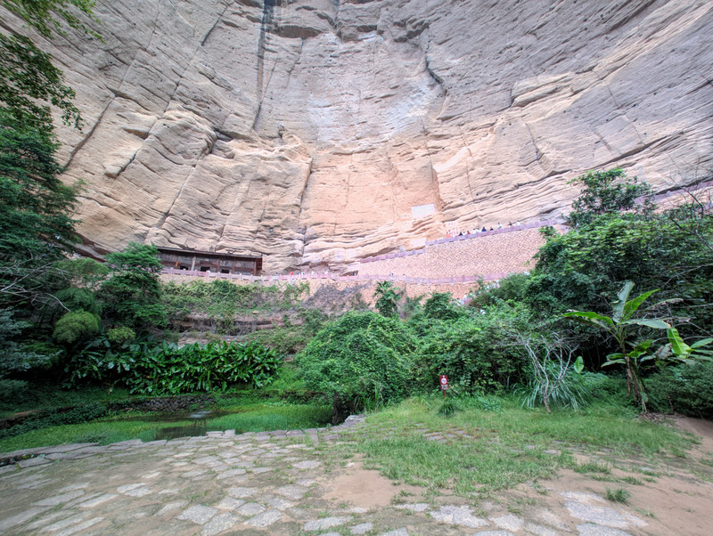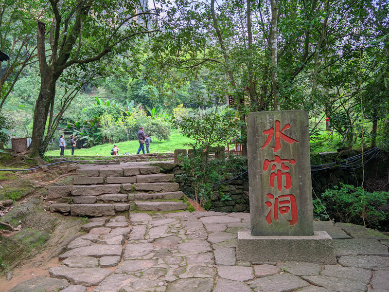漫游道的起点,叫水帘洞。然而真正的水帘洞却不在这里,而在右侧的山上,上山需要100多级台阶。如果你想去水帘洞游玩,你需要先爬上去,然后绕一个圈再下来。