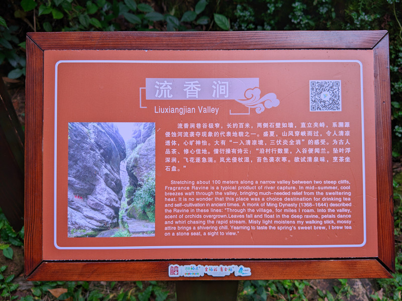 整条路线可以看到山谷、溪流、古寺、茶园、丹霞嶂、古崖居、石板桥和花花草草。