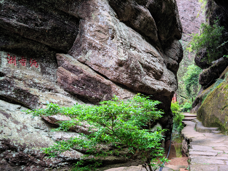 走过一段清净的山谷道路,我很快到达著名的大红袍景点。
