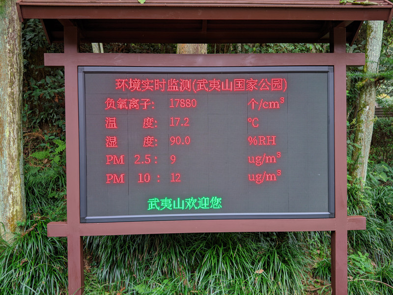 17:40,我回到武夷宫站,发现车站已经人去车空,入口关闭。估计17:30交通车全面停运的意思就是17:30后景区道路就不会再有交通车,不是17:30开出尾班车的意思。交通车没了,我怎么回去呢,难道要我步行1公里到外面三姑老街再坐车?当然不是,我打开导航软件,发现步行100米就有公交9路车的“武夷山庄”站,一切解决。说起这9路车也是神奇,从武夷山北站开往武夷山景区的星村站(九曲溪漂流起点),贯穿整个武夷山景区,以后武夷山景区恢复收费,我坐9路车是不是还能免费进入景区?