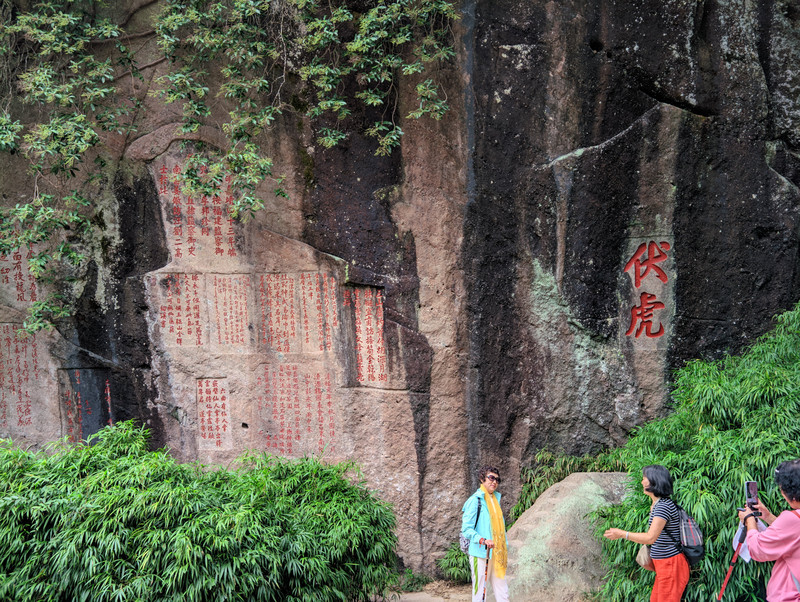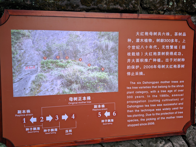 不过所谓大红袍母树,传说它们长在悬崖峭壁上,其实也没那么夸张。只是刻的红字旁边的六棵小小的灌木。游客们只能远远的参观,视力不好的估计都看不清楚。号称用大红袍茶做的茶叶蛋,大概就是台湾人说的吃不起的茶叶蛋。