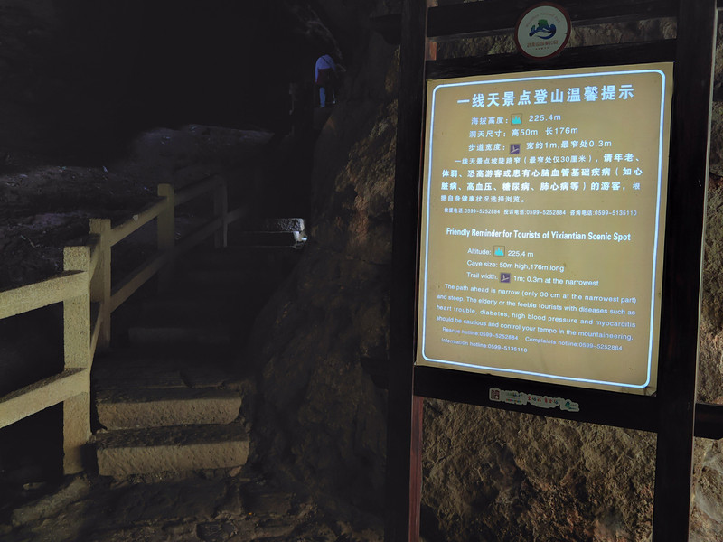 返回风洞入口,继续挑战一线天。后面的道路越来越窄暗,前方的人越走越慢。突然前方的一位中年女子不走了,我急问何事?她说她看到前面越来越黑、越来越窄,害怕了,想打退堂鼓。我也有点犹豫,我身材过一线天是没问题的,但是受不了前方的人慢啊,搞一个给卡住半天不动那不是很麻烦?再想起之前网上人们提起过的蝙蝠,在这么黑乎乎的一个窄通道里,要是蝙蝠老兄们在这时候出来晃荡一下,我真是躲都没地方躲.....想着想着,我也怂了,陪着该女子退到入口。幸亏后面没人,也还没到最窄的路段,退回来还是有空间的。