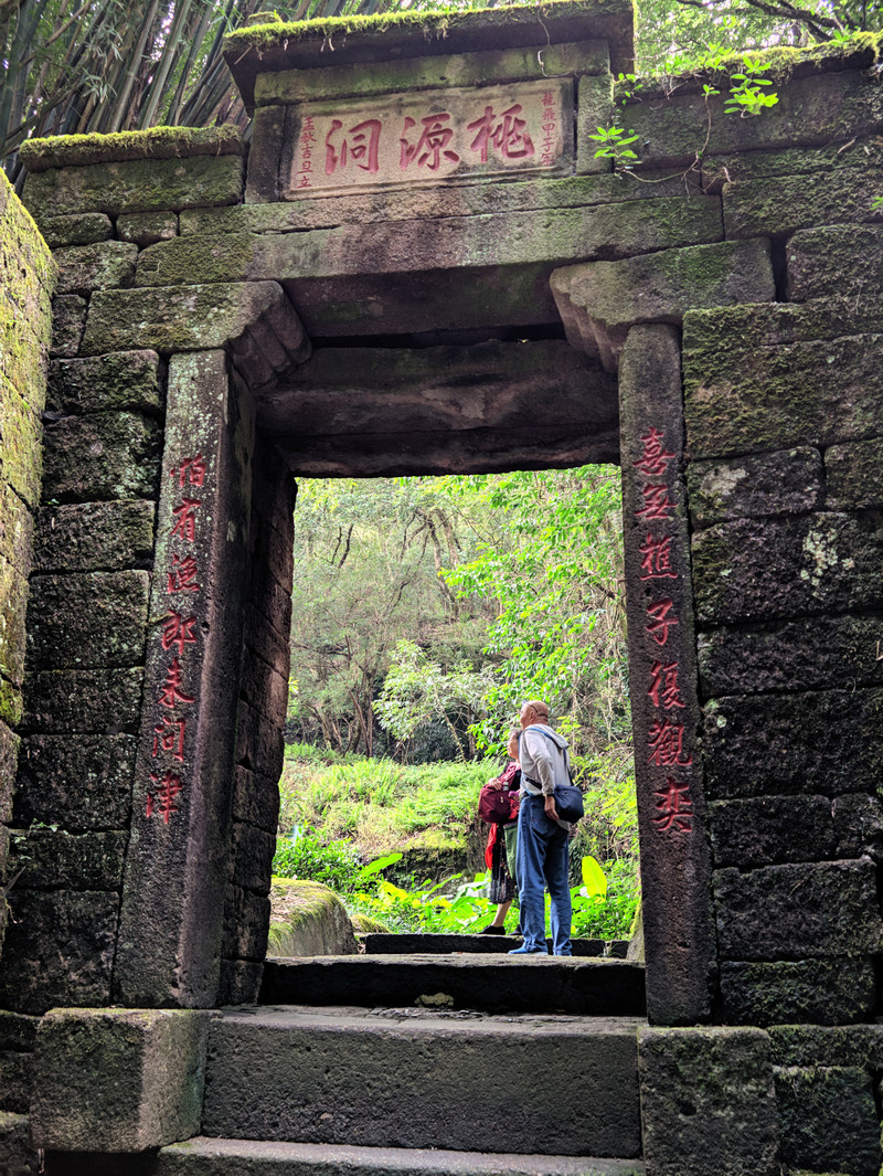 离开桃源洞,发现出口(对大部分游客来说应该是入口)是一洞门,洞门上方题有“桃源洞”三个字,两侧有一副对联:“喜无樵子复观奕,怕有渔郎来问津。”从洞门往里面看,真有点《桃花源记》描写的景物意思:“林尽水源,便得一山,山有小口,仿佛若有光……从口入。初极狭,才通人。复行数十步,豁然开朗。”。似乎,好像,从这洞门进入桃源洞才是正确的打开方法,是我走的路线反了,搞乱观景顺序。
