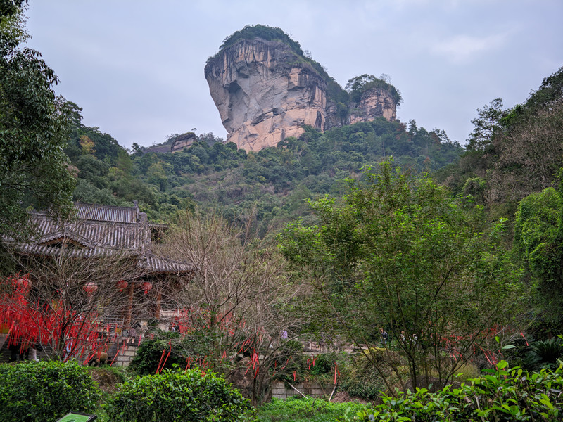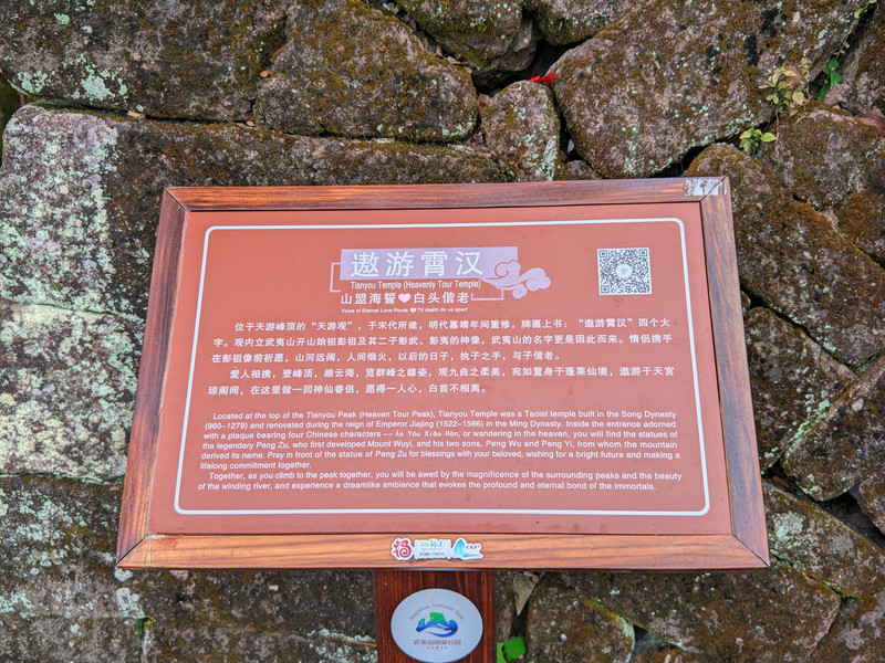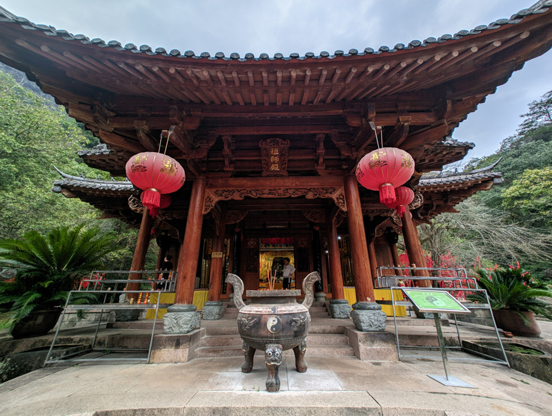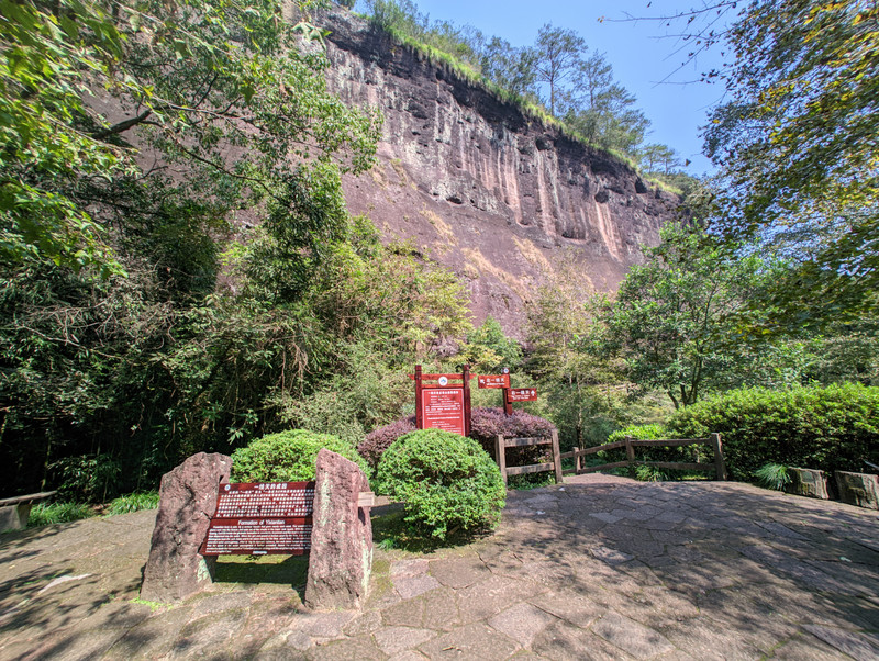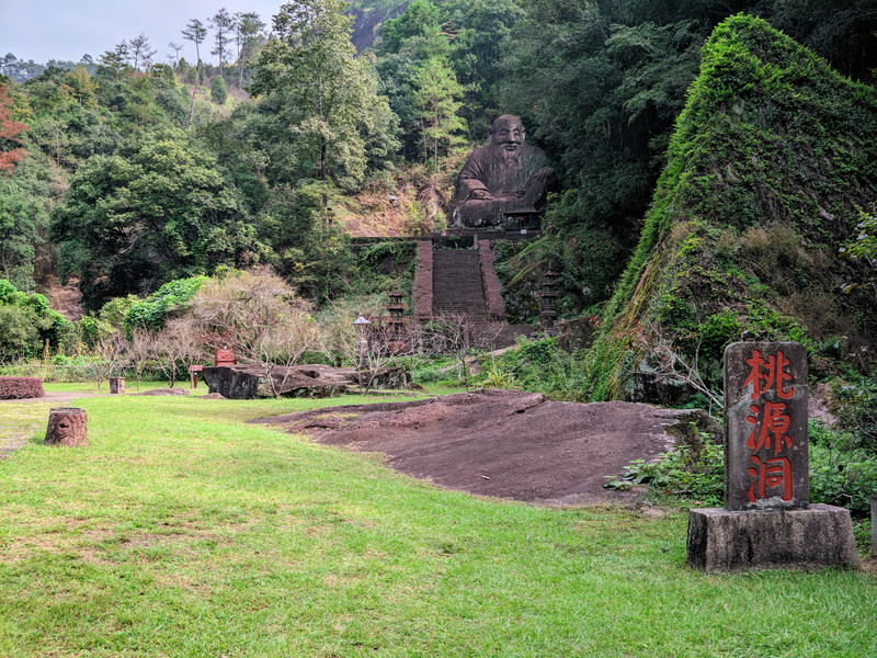 来到桃源洞,先看到山路出口有一个巨大的老子像,然后是一处道馆。整个景区只有游人二三个,景区这么冷门的?询问道馆人员何为桃源洞,他说道馆就叫桃源洞,取自室外桃源之处的典故。急看旁边文字介绍,桃源洞堪称“观在景中、景中有观”的隐秘之地,它是武夷山著名的72洞之一。彷如陶渊明笔下「世外桃源」,故而定名,并凭此拥有武夷山“第一幽绝之所”的美名。徐霞客五次进入武夷山 ,真正算得上是用心踏遍武夷山山水水的人,连如此幽僻隐秘的所在也涉足过。他仅用寥寥数笔,已将此地描画如在目前:“四山环绕,中有平畦曲涧,围以苍松翠竹,鸡声人语,俱在翠微中”。