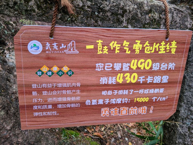 终于天游峰登顶,从山脚算起耗时45分钟。这样的山对于经常登山的人来说,可能会觉得累,但真的不算什么,800多阶的攀登,对体力的要求不是很大。我们爬山途中自发形成的青年小团伙不禁发出感叹:“武夷第一峰,就这难度?”团伙成员均觉意犹未尽,纷纷表示下去再爬上来一次也没啥问题。当然,这都是吹牛行为,有时间有精力还是抓紧去打卡武夷山其他景点吧,还有好多地方没去呢。