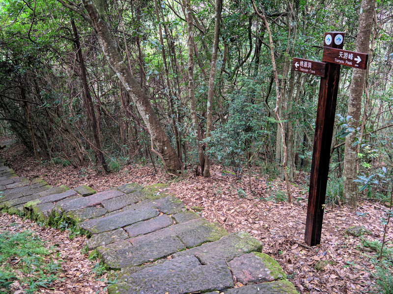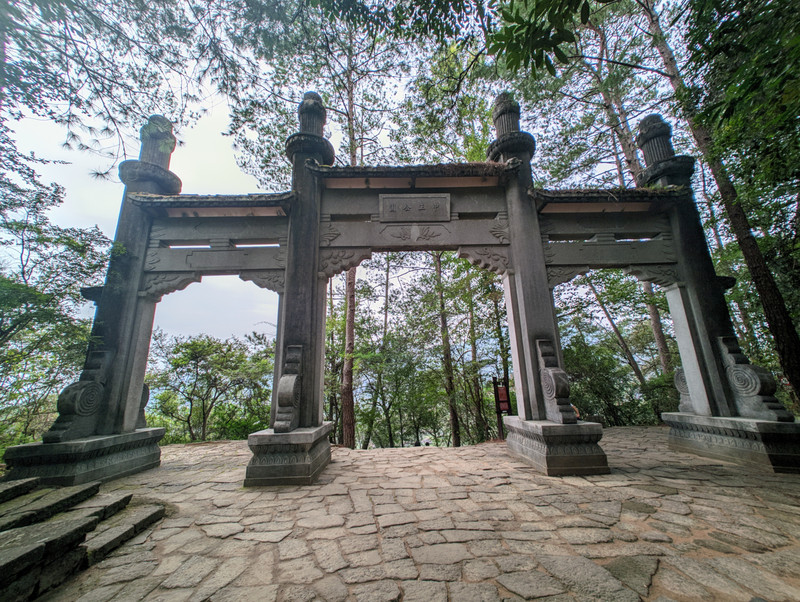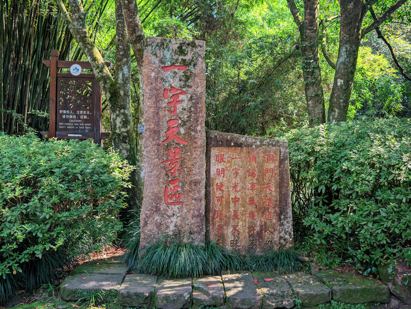 按山顶指示下山,绕过天游阁,就看到第一山的摩崖石刻,继续上行到中正牌坊处,此处有两条路可以选择,右边是通往桃源洞,左边通往隐屏峰,两条路最终都可以回到云窝,也就是开始登山的地方,这两条岔路,其实就是上天游和下天游的区别,往桃源洞的是上天游,往隐屏峰的是下天游,两者只能选其一。我选择了往桃源洞方向,因为有攻略介绍桃源洞值得一去,但下山的绝大部分人都走隐屏峰方向。