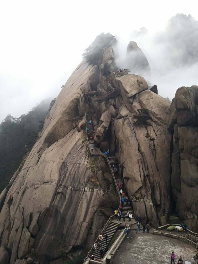 早饭后,下天海。继续前行上鳌鱼峰,下鳌鱼洞,爬百步云梯,到达莲花亭。(需要两个小时)