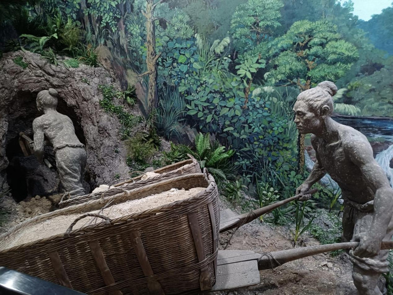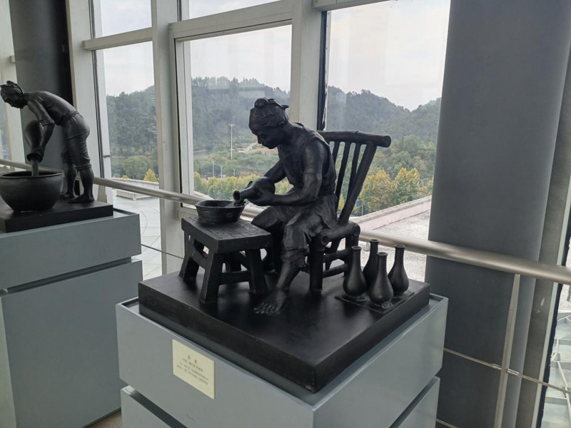 而在四楼的走廊上,放着制陶的各种工序的雕塑模型,栩栩如生,很有意思。