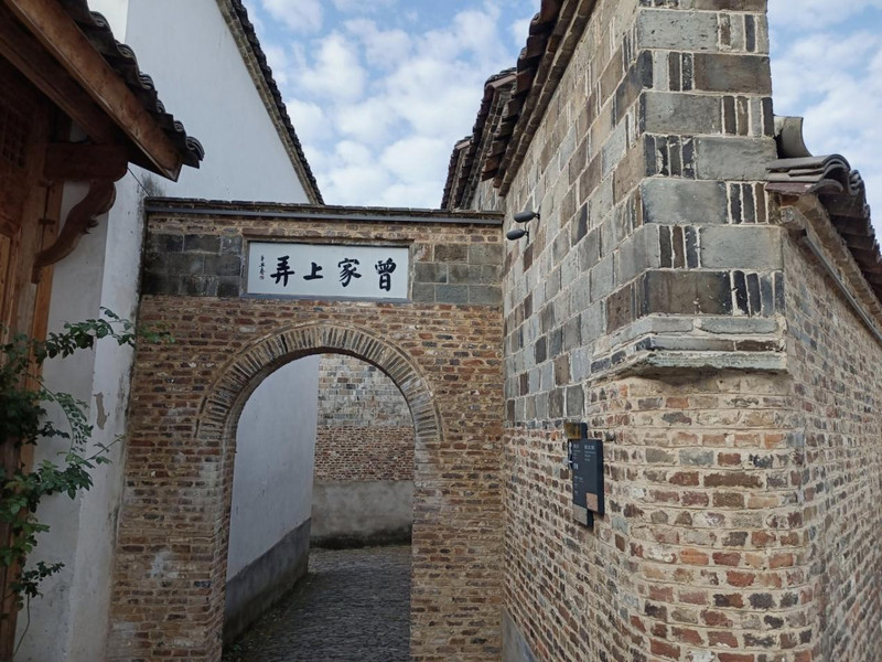 这里的弄堂都有“上弄”、“下弄”,不解其意;忘记问问当地人了。弄堂里的建筑已经有些年份。这里都是比较古朴的砖砌墙。只是弄堂里比较少植物。偶尔有个爬墙植物,便添彩不少。实际上,弄堂里面也有人住的,虽然比较少。有几家酒店。