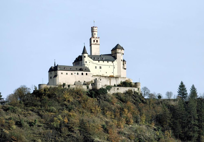 时而抬头看看古堡,坚不可摧的高墙,威严耸立,偌大的墙面上只有几扇微小的窗户,感觉特别严肃高冷。照片摄于莱茵河中段。