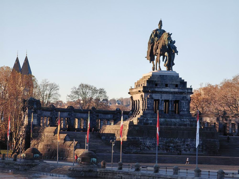 科布伦茨是摩泽尔河与莱茵河的交汇点, 因其“德国之角”纪念碑而闻名, 也是莱茵河中段世界文化遗产区域的重要组成部分。图为远眺“德国之角”。