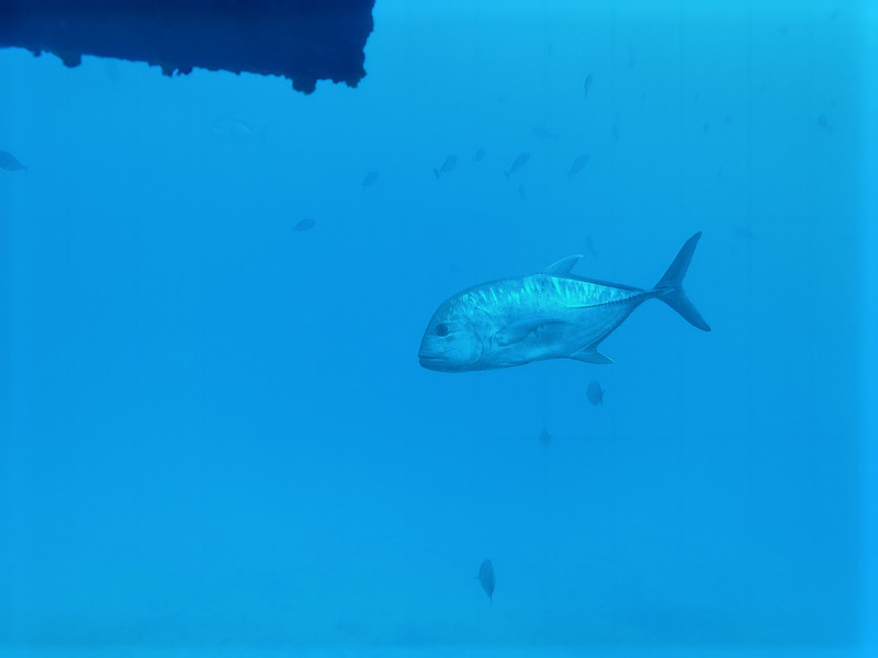 潜艇缓慢下潜,窗外可以看见鱼群在海中随波飘动,服务人员用英文进行讲解。游览海底世界可以看见各种鱼类、水泥构件、沉船等景象,还看见一只海龟在沉船上游动。这个项目既可以乘船在海上欣赏威基基海滩远景,又可以潜海观赏,算是一种不错的体验。